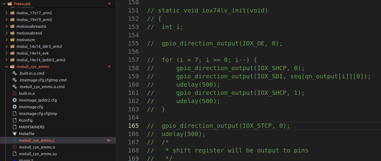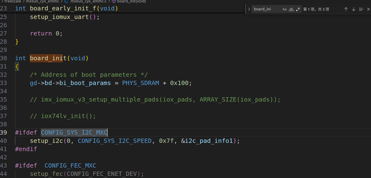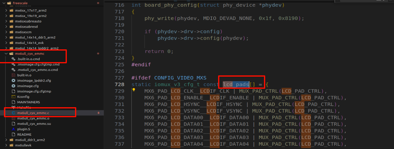 这里看上一个文章里,我们创建了自己的板子文件,也就是board下的文件夹。外设的一些设置都在这里配置了。我们打开复制修改的board下的文件夹下的c文件,我这里命名为mx6ull_cyx_emmc.c