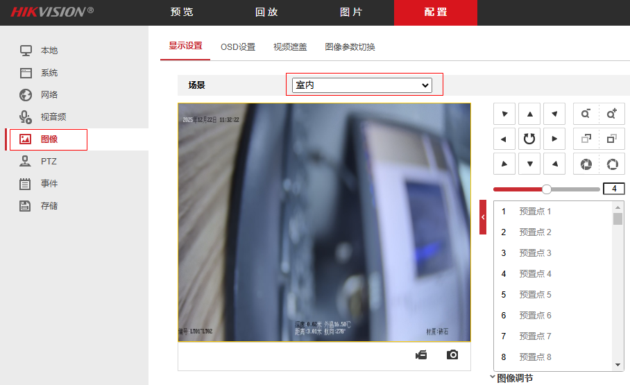 13、选择图像,显示设置场景选室内,否则不能修改变焦倍数。