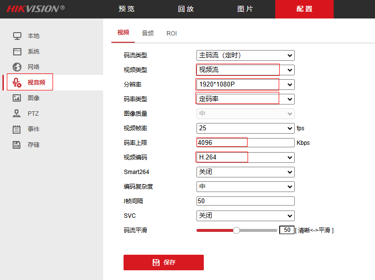 12、选择视音频,修改视频参数,视频参数根据实际使用情况和环境修改,一般选择定码率,码率上限4096Kbps,否则会占用大量带宽,导致视频不流畅,甚至卡顿。