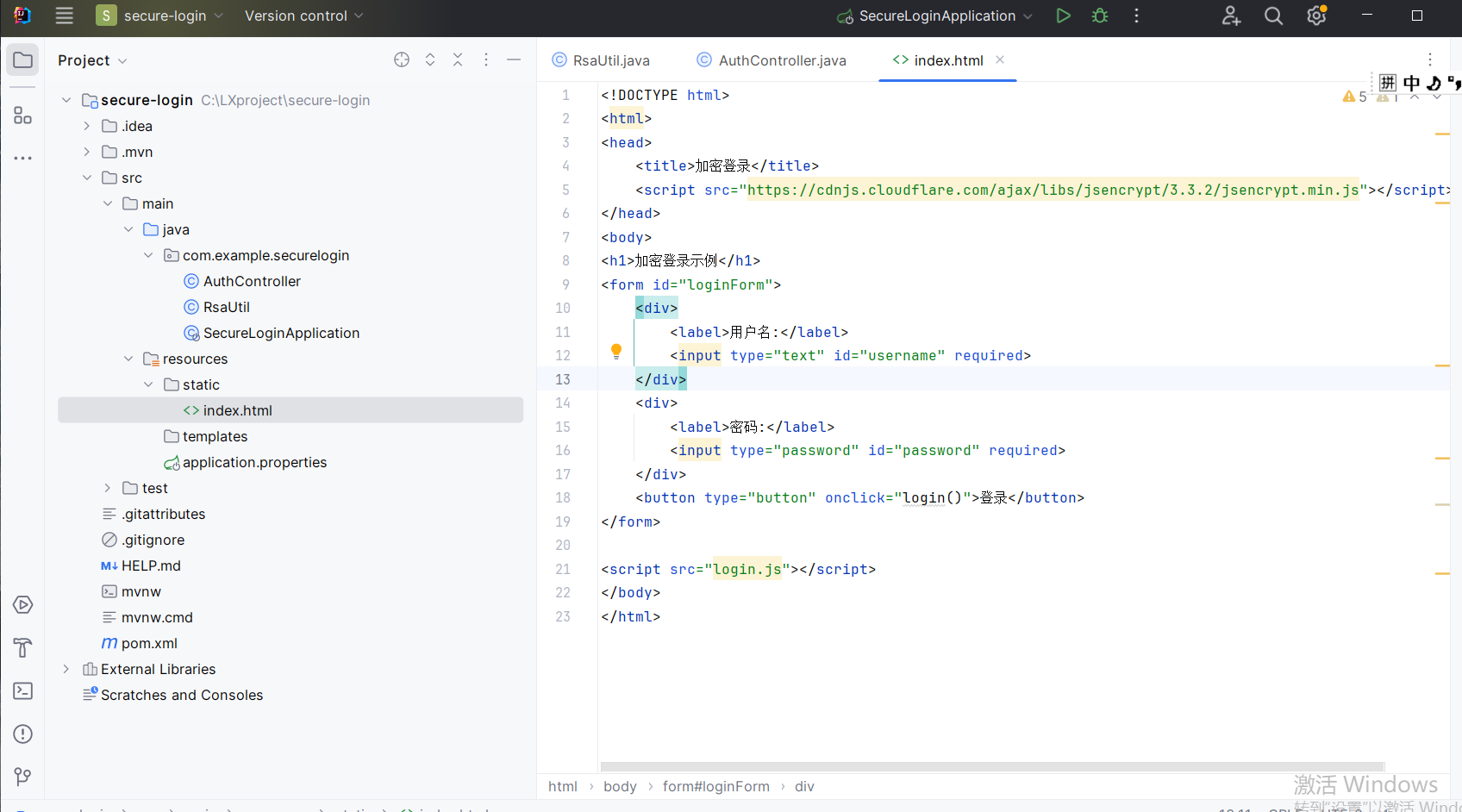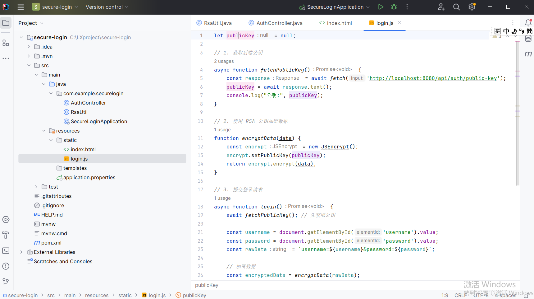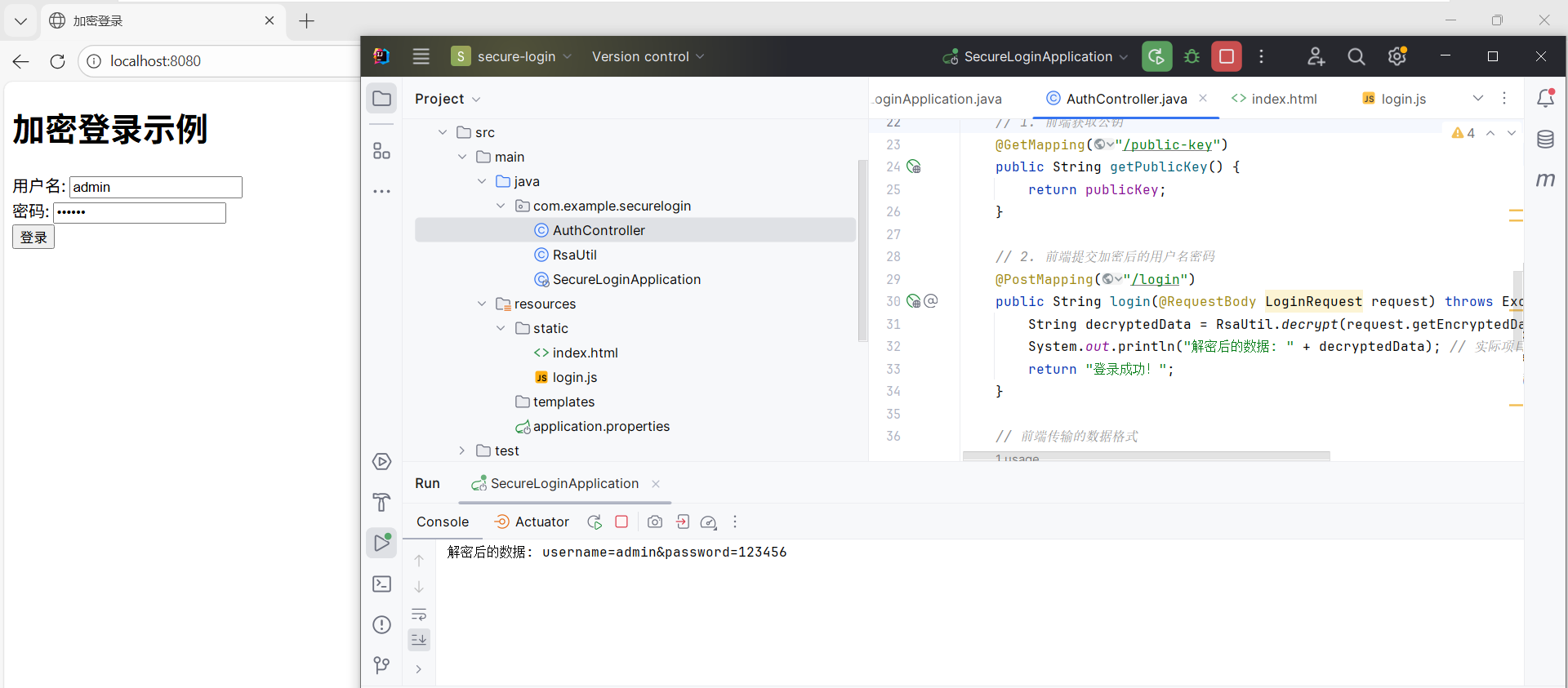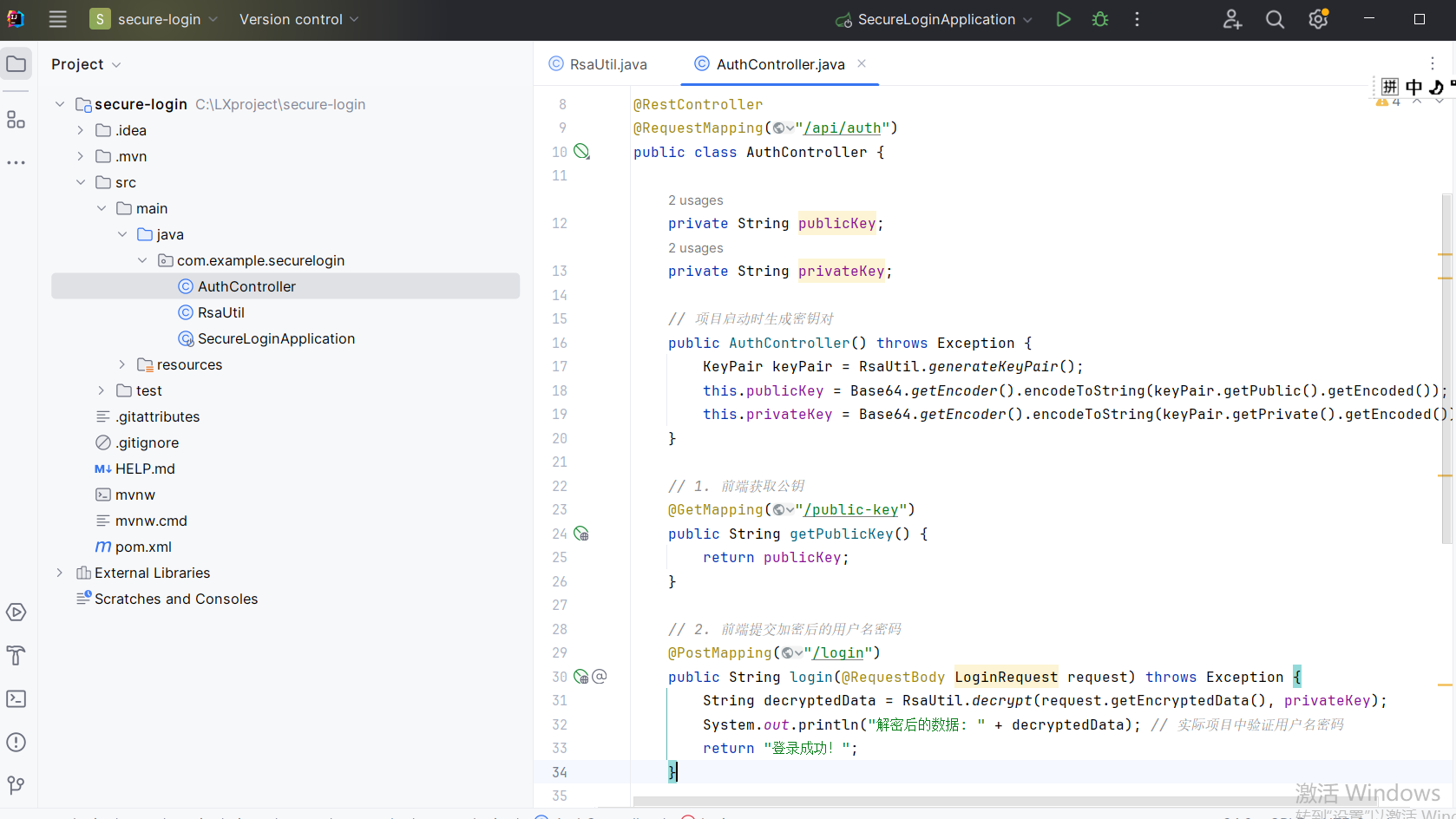 SecureLoginApplication主类(项目启动时会自动生成 RSA 密钥对)。