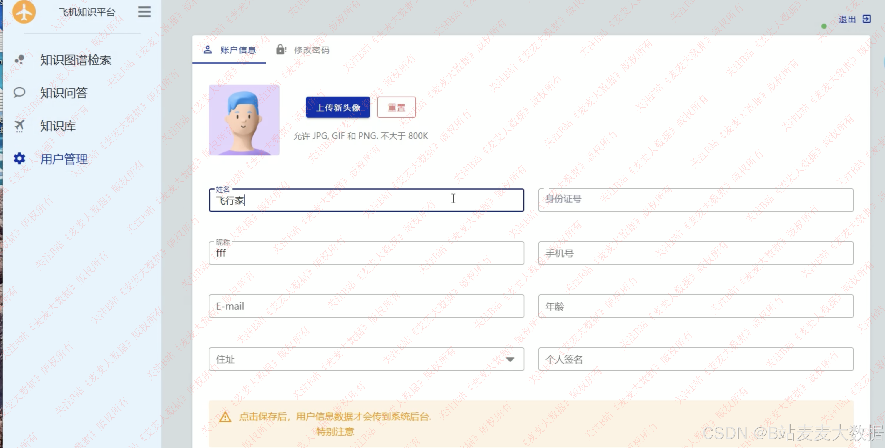- 修改头像:可以上传自己想要的头像进行个性化设置