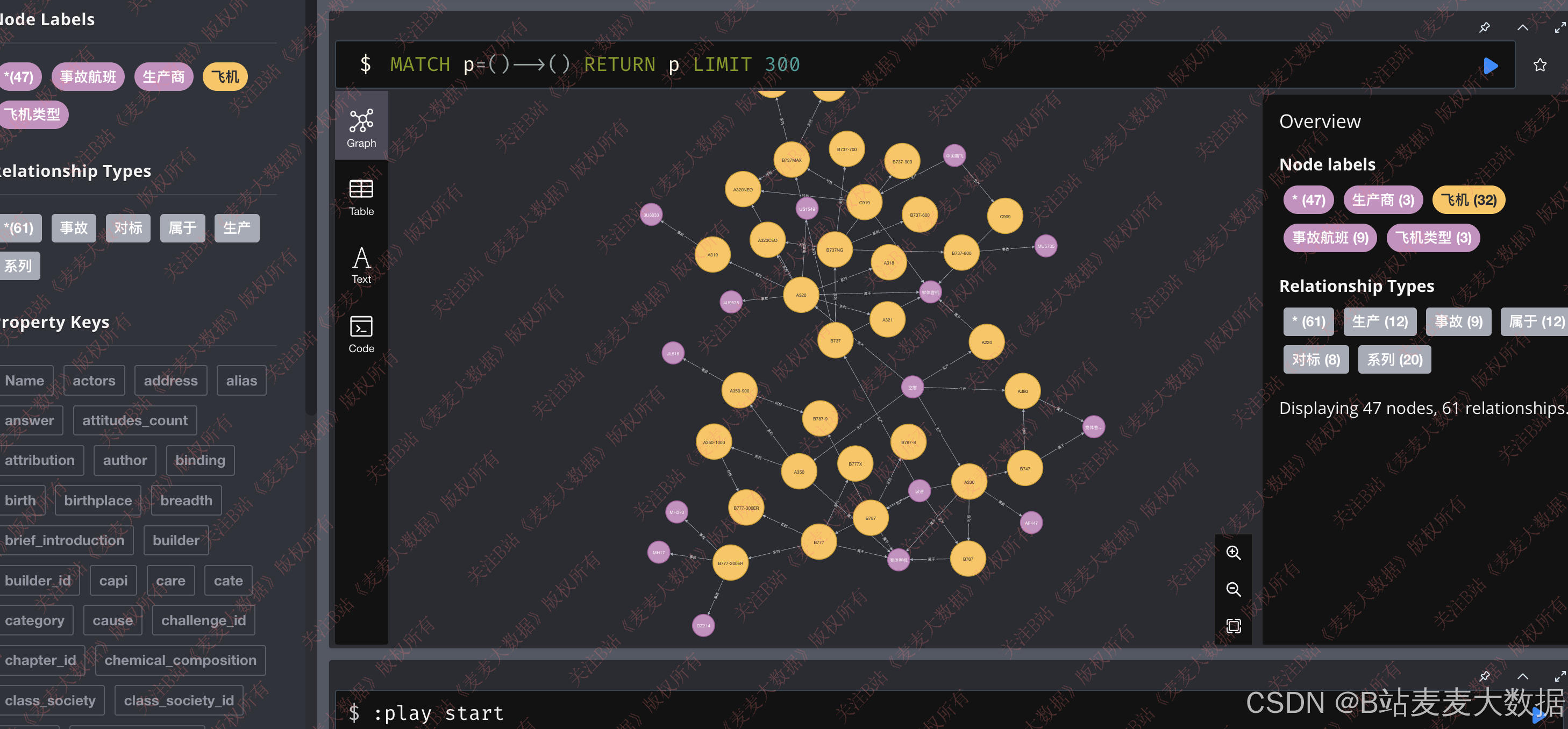 - Neo4j 图数据库根据查询返回匹配的节点和关系数据(例如,飞机的某些参数、飞机发生的事故等)。