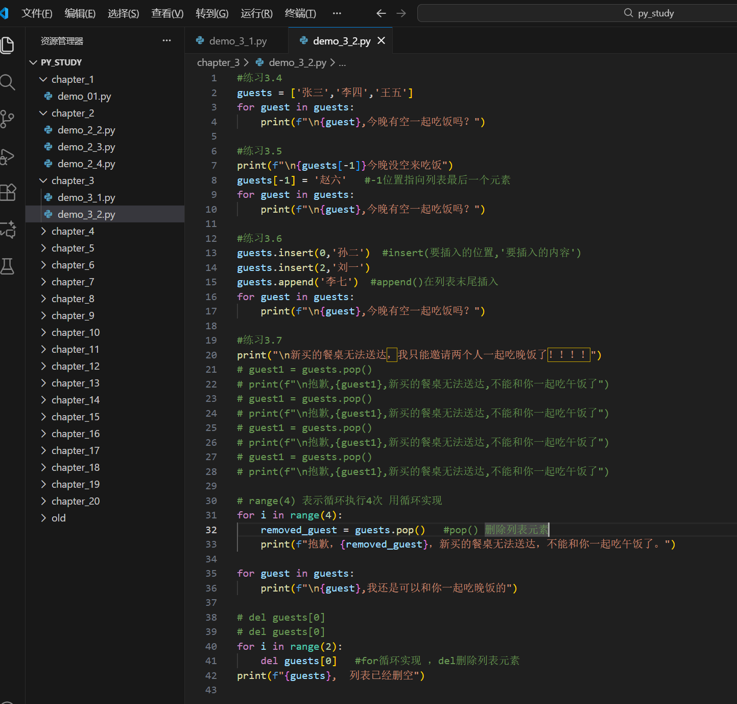 print(f"\n{guests[-1]}今晚没空来吃饭")