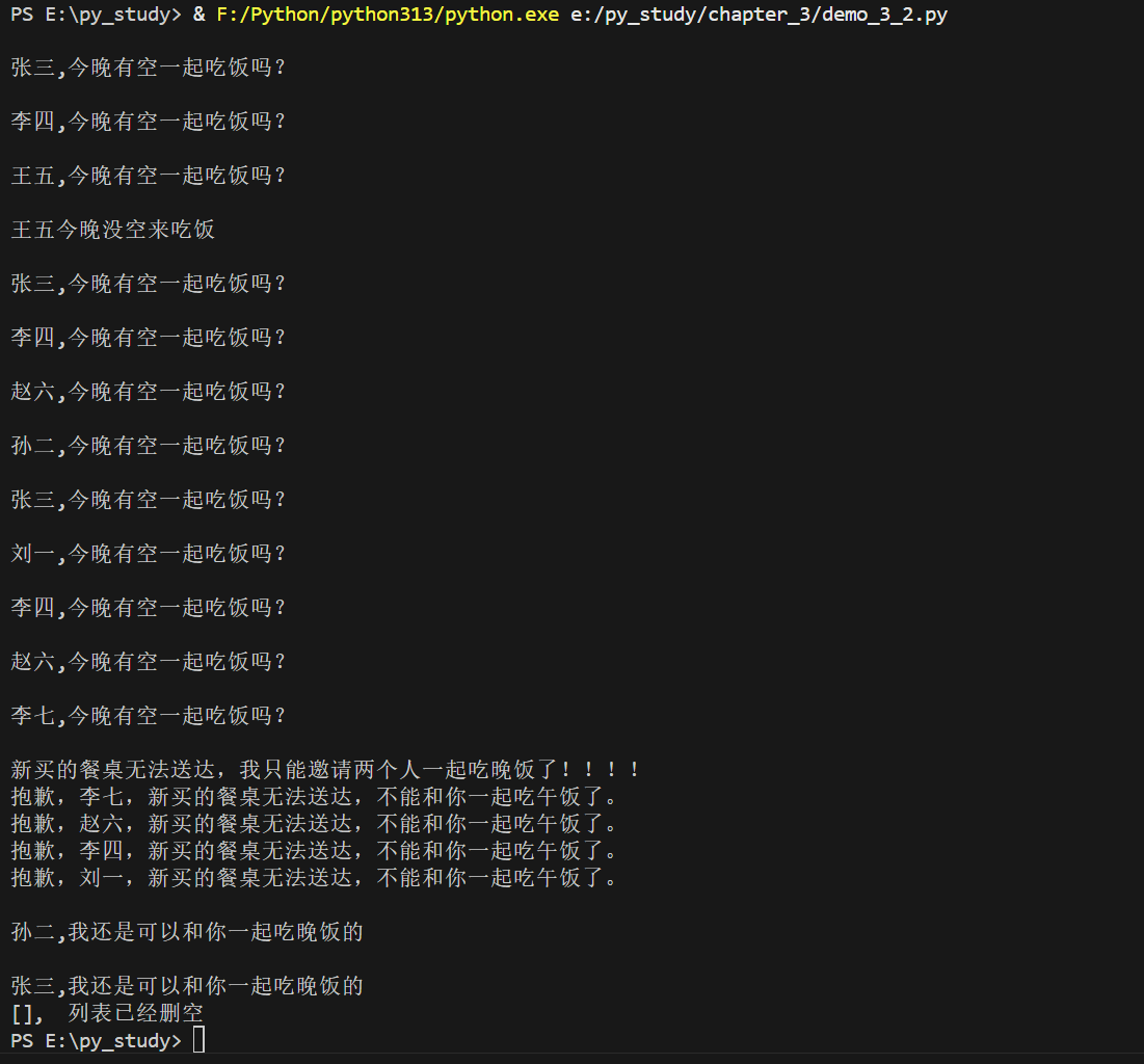 # print(f"\n抱歉,{guest1},新买的餐桌无法送达,不能和你一起吃午饭了")