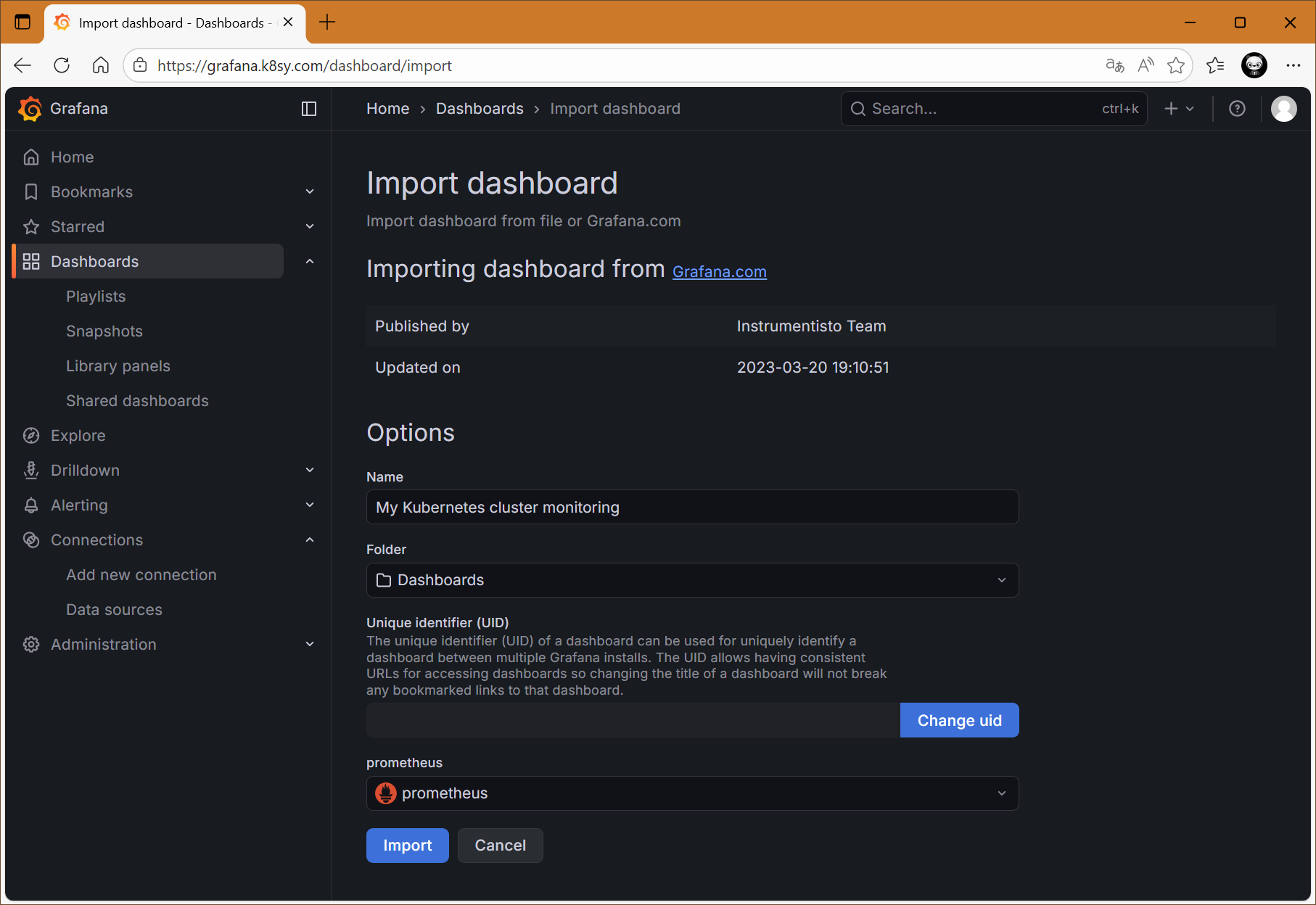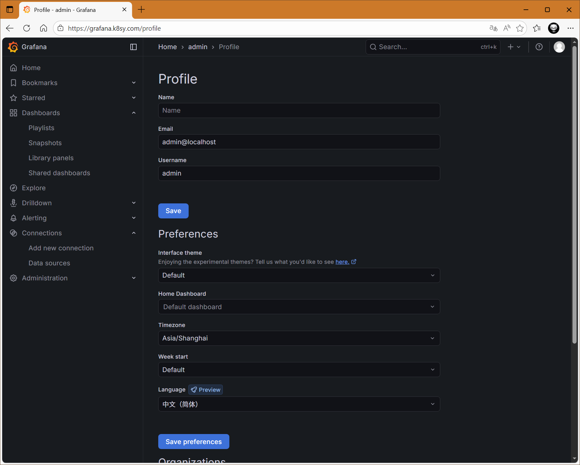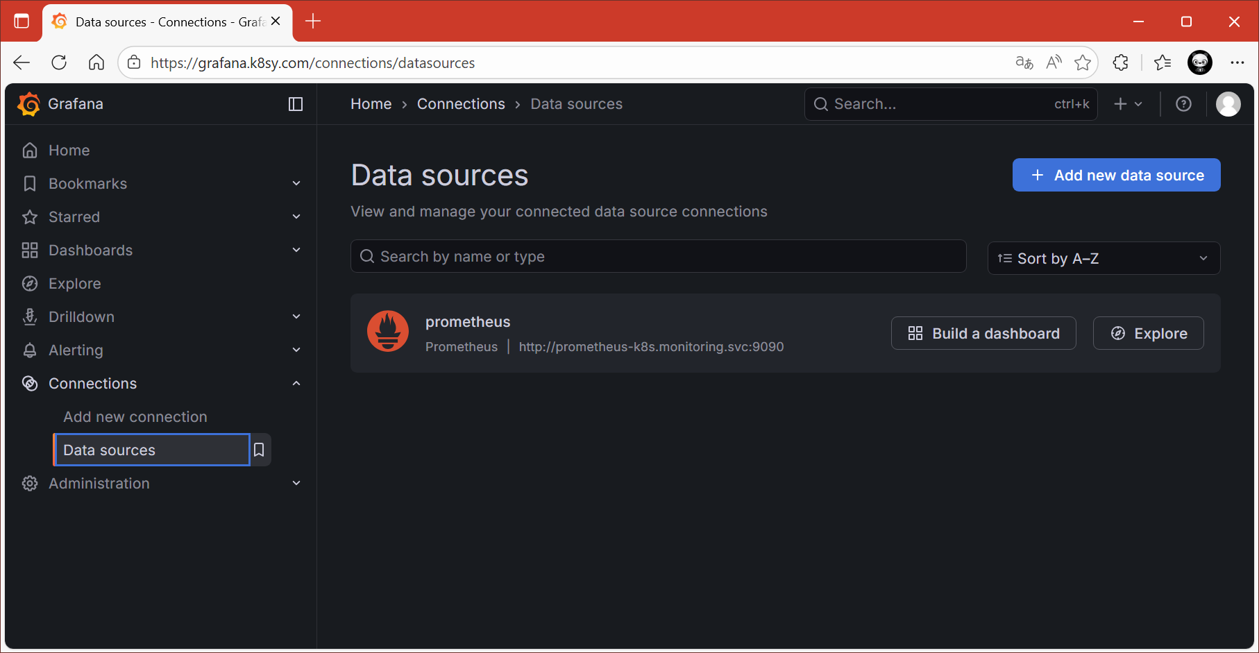 浏览器访问:http://grafana.k8sy.com ,Connections ----> Data Sources。