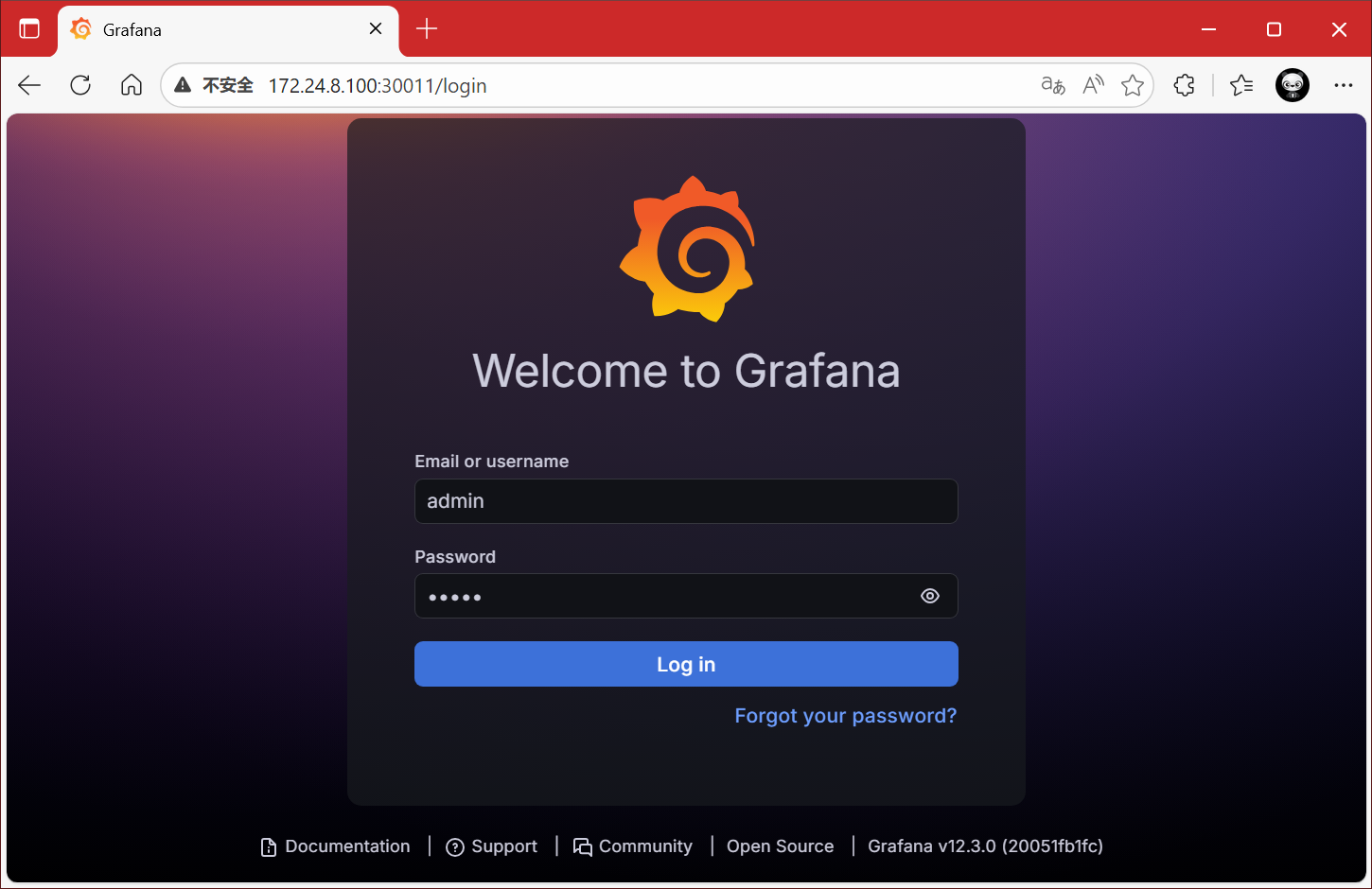 访问grafana,http://172.24.8.100:30011/ ,默认用户名密码都为admin。