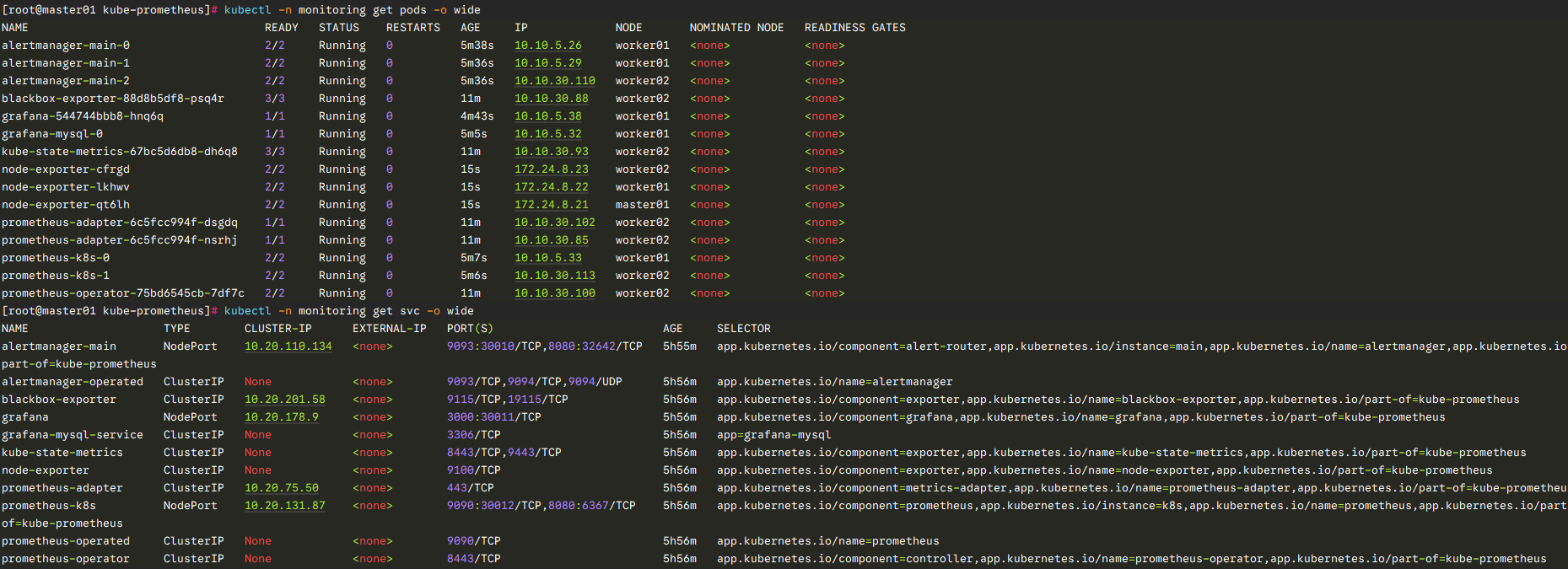 [root@master01 manifests]# kubectl -n monitoring get pods -o wide