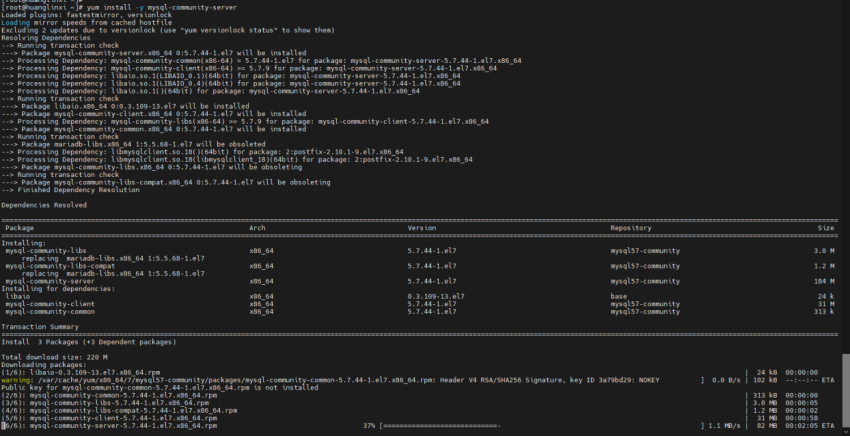 rpm -ivh mysql57-community-release-el7-11.noarch.rpm