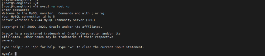 # 输入密码后进入MySQL命令行