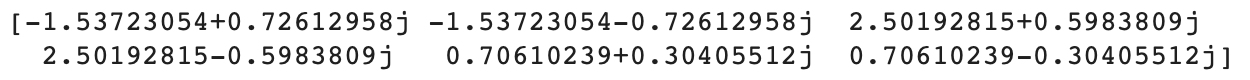 H不是对称矩阵(H ≠ H^T),所以其特征值不一定全是实数,出现了共轭复数对。