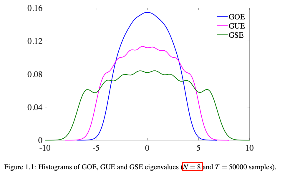 在随机矩阵理论(RMT)中,一个重要的集合是 高斯正交系综(GOE),它由 N x N 的实对称矩阵构成,矩阵元是某种高斯随机变量。