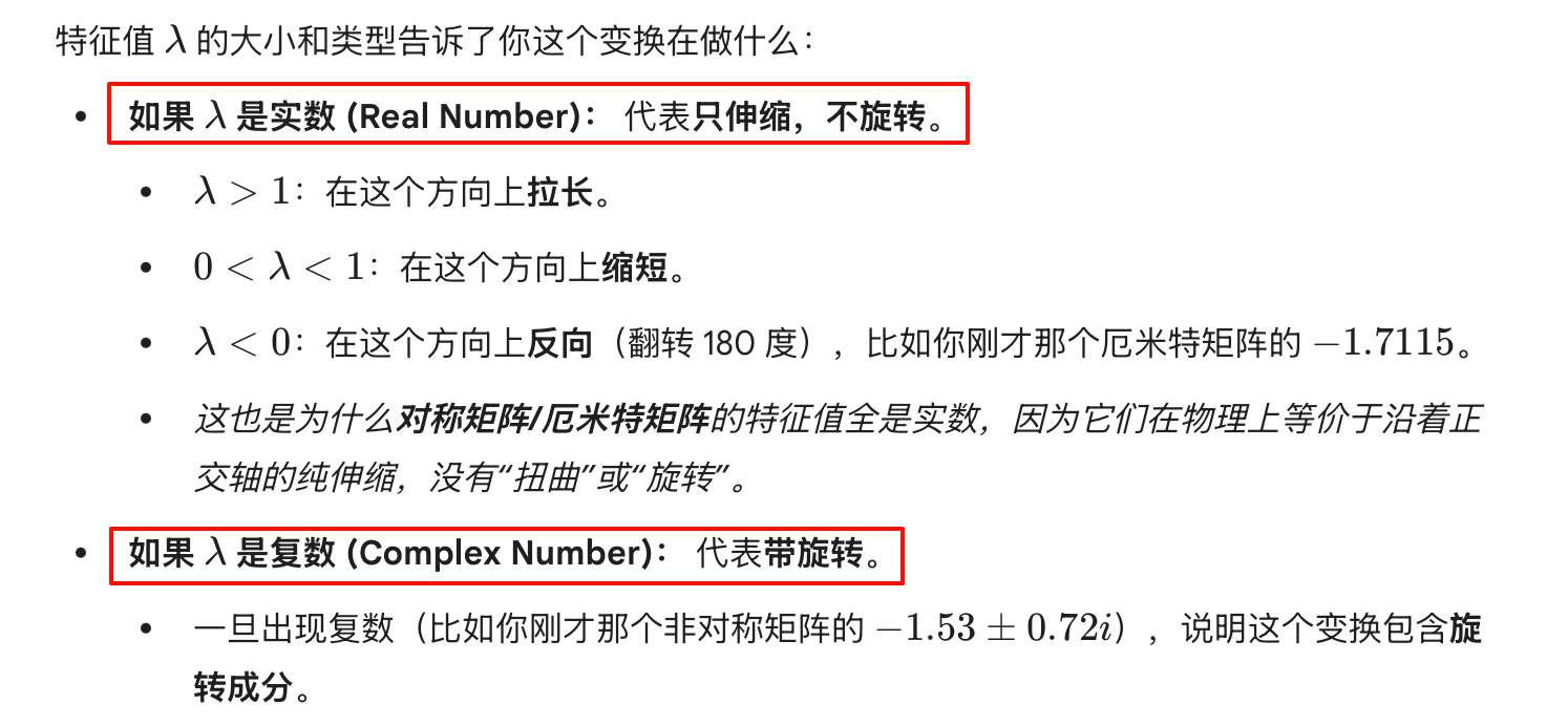 - 特征值全为实数:这是对称/厄米特/自对偶矩阵的数学性质