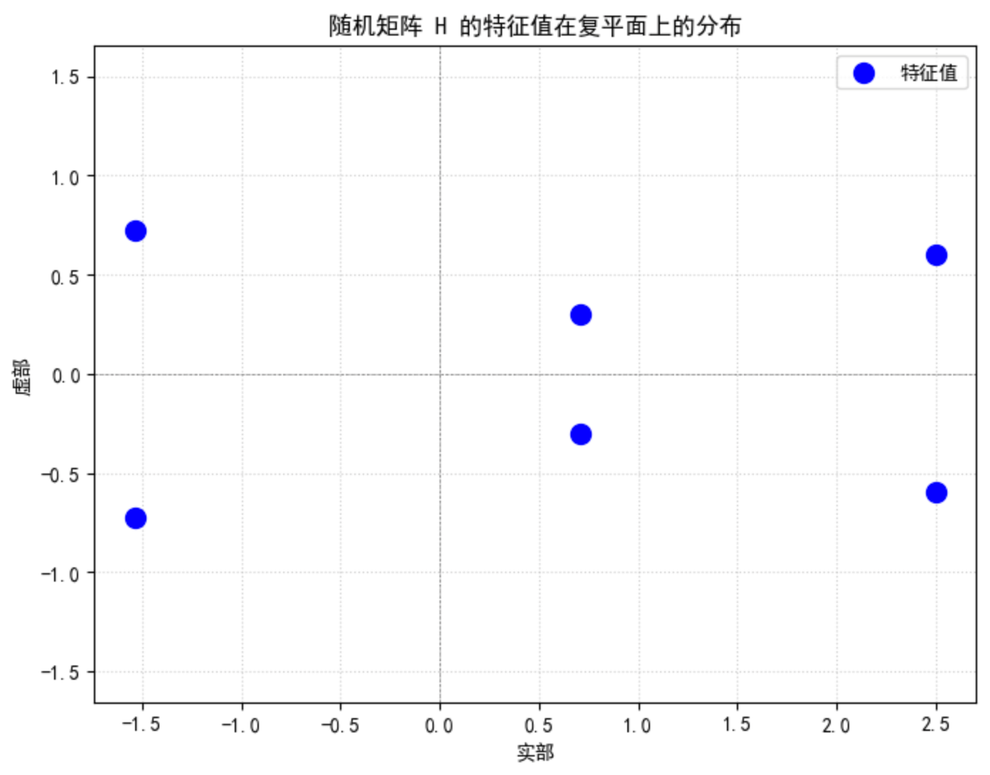 为了更直观地理解,下图展示了所有特征值在复平面上的位置: