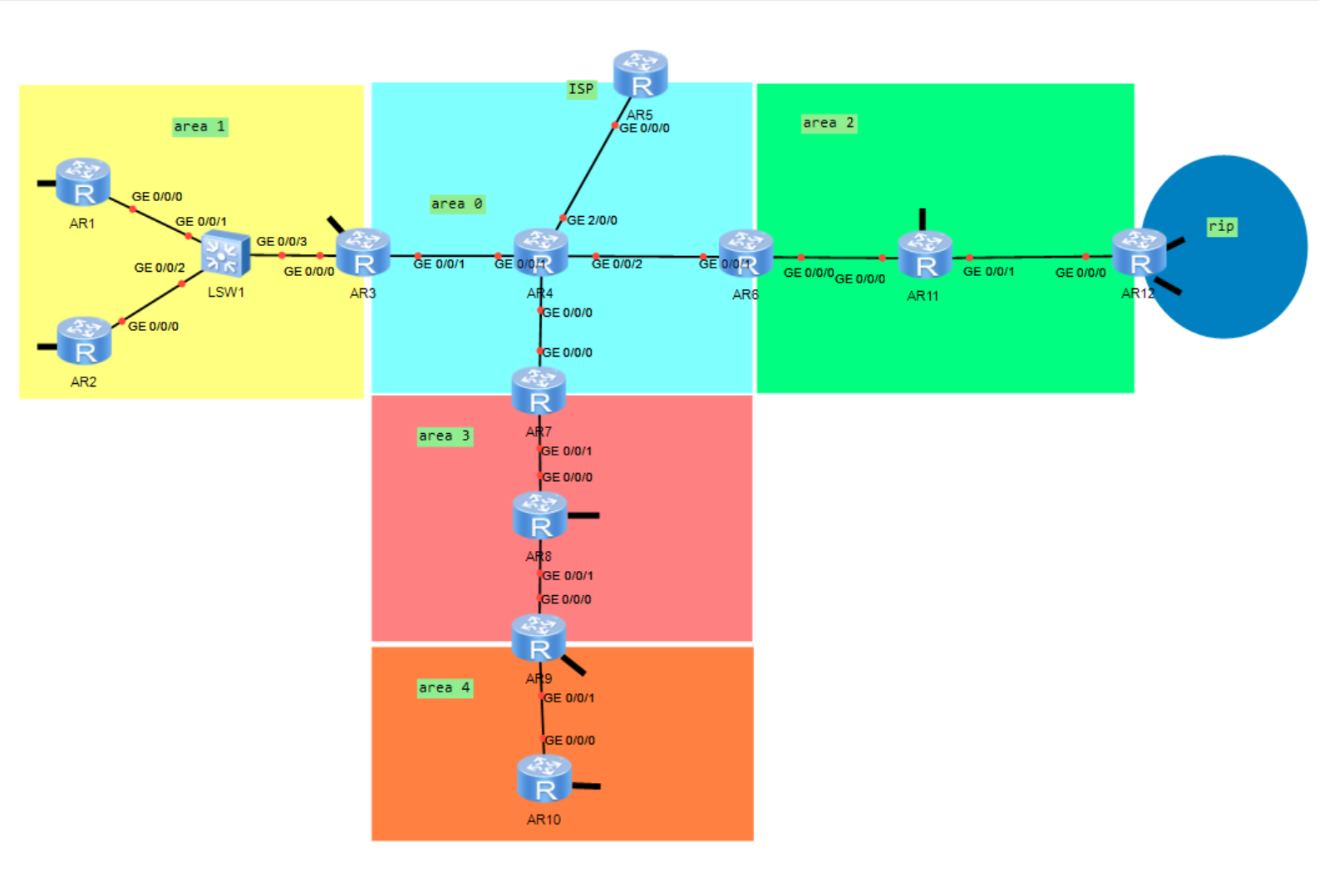 2.所有设备可以正常访问R5的环回:即全网可通