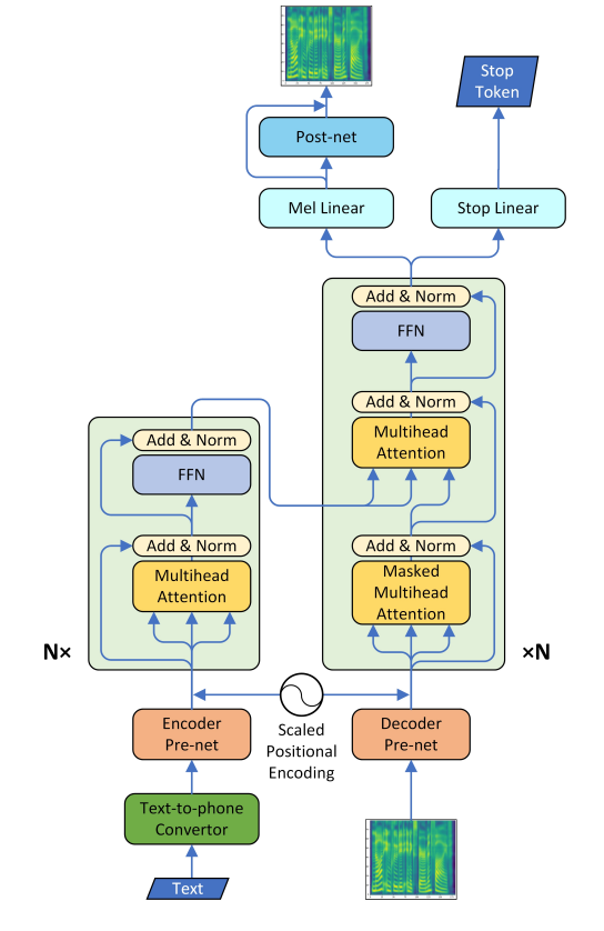 Transformer TTS网络基于Tacotron 2和Transformer网络构建。该方法提出将Transformer与Tacotron 2相结合来预测梅尔频谱图,并利用WaveNet重建最终波形。