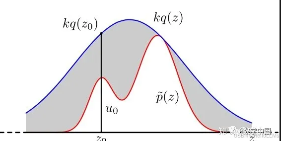其几何意义为 用kq(x)kq(x)kq(x)包裹住目标分布,并在内部随机撒点,在目标分布P(x)P(x)P(x)里面的才会被留下