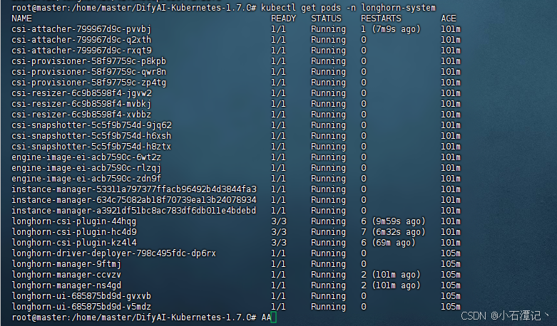 原因是上面的longhorn是在master节点安装的,node1和node2没有安装~~