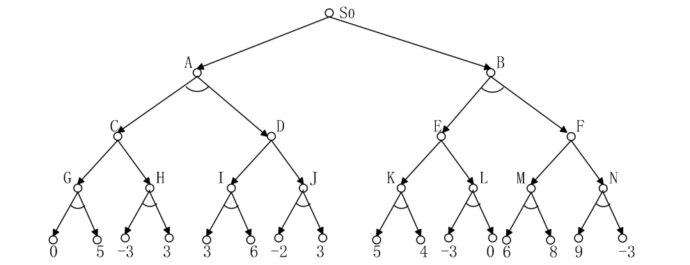 # 第三层:Min节点K、L(E的子节点);Min节点M、N(F的子节点)