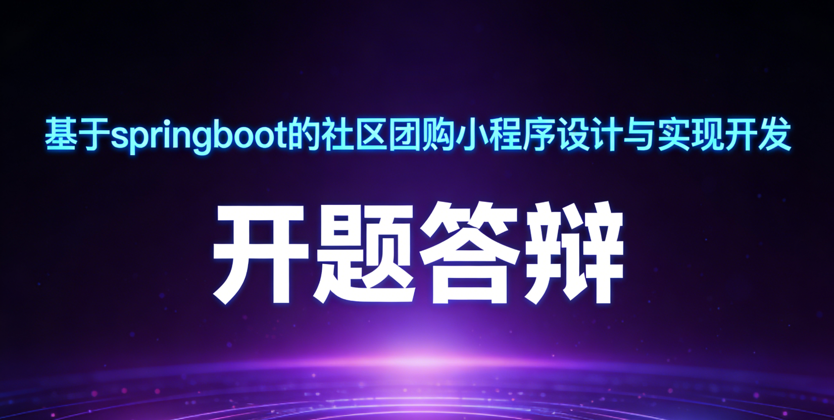 各位老师好,我是××同学,本次课题为"基于 SpringBoot 的社区团购小程序"。系统把商家、团长、团员三个角色放进一个微信小程序里,完成商品发布、拼团下单、统一配送、社区自提的核心闭环。主要功能模块有:商品管理、订单管理、团长/会员管理、秒杀活动、销售统计、售后投诉等。前端用 Uni-app 写成小程序,后端用 SpringBoot + MyBatis,数据库 MySQL,部署用 Tomcat,整体按 MVC 分层,尽量做到"高内聚、低耦合"。下面请各位老师提问。