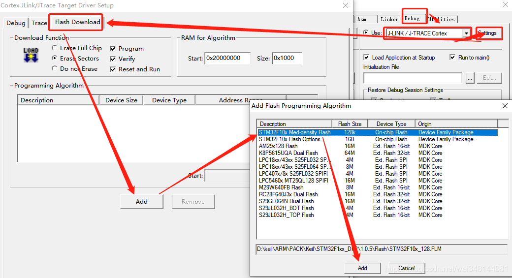 最后,根据所选芯片的 Flash 存储容量选择对应的下载算法。