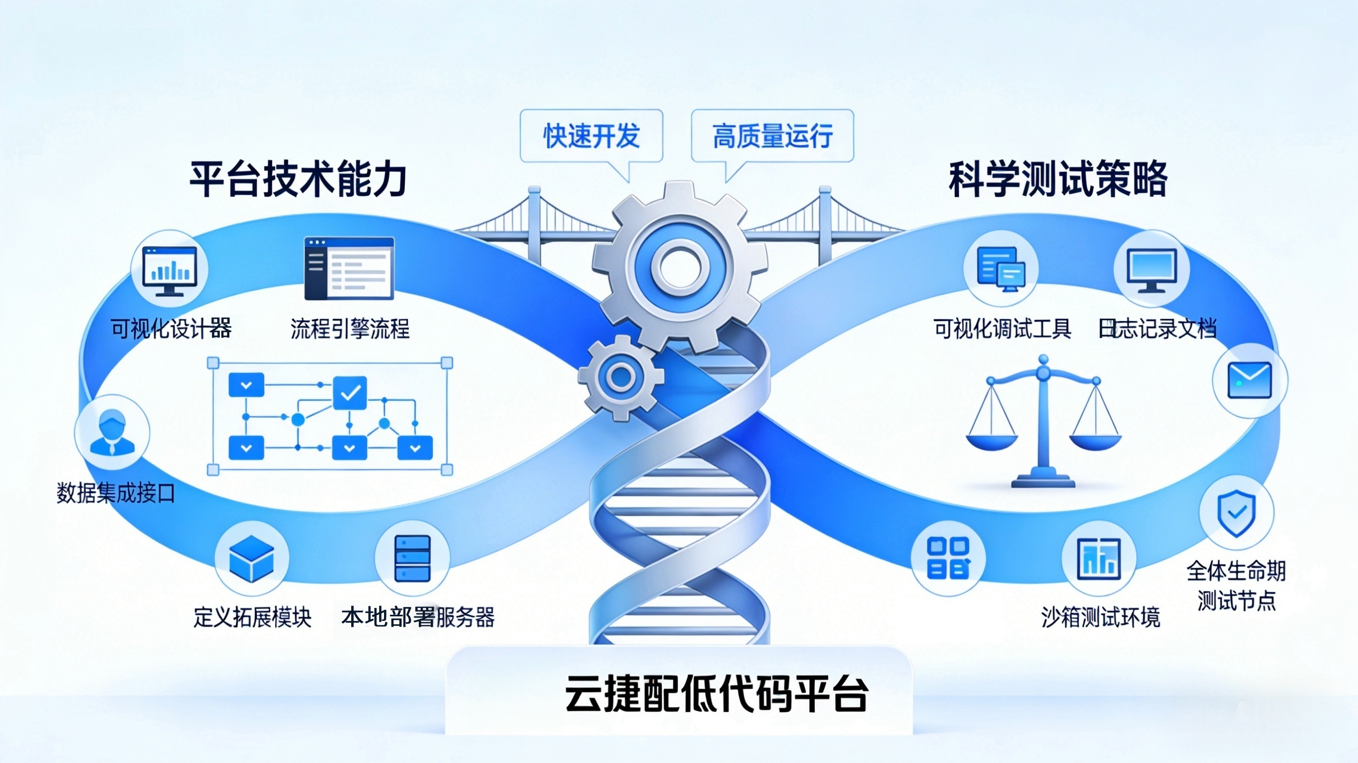 云捷配低代码平台从用户需求出发,在产品设计中融入了全链路的质量保障考量,通过可视化设计器、灵活的流程引擎、强大的集成中心、安全的自定义拓展框架和适配性强的本地化部署方案,为应用质量提供了底层支撑。而科学的测试策略,正是将这些平台能力转化为实际应用质量的关键桥梁。唯有二者结合,才能让低代码应用真正实现"快速开发"与"高质量运行"的平衡,为企业数字化转型赋能。
