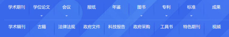 CNKI《中国知识资源总库》是一个大型动态知识库、知识服务平台和数字化学习平台,包含图书、期刊 、学位论文 、会议论文报纸、年鉴、专利、标准和科技成果等多个子数据库。