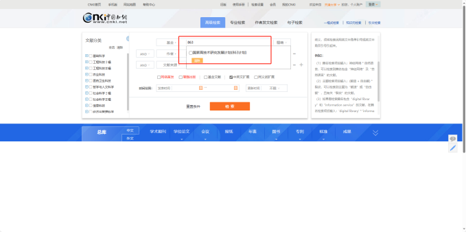 在CNKI检索网站选择高级检索,跳转到高级检索界面。