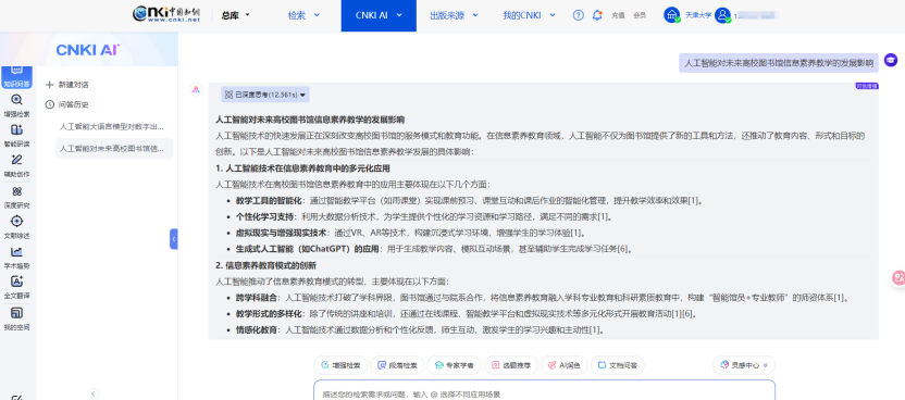 结论:利用CNKI学术期刊库检索天津大学2024年出版,受国家自然科学基金资助的期刊论文数量为1423篇。
