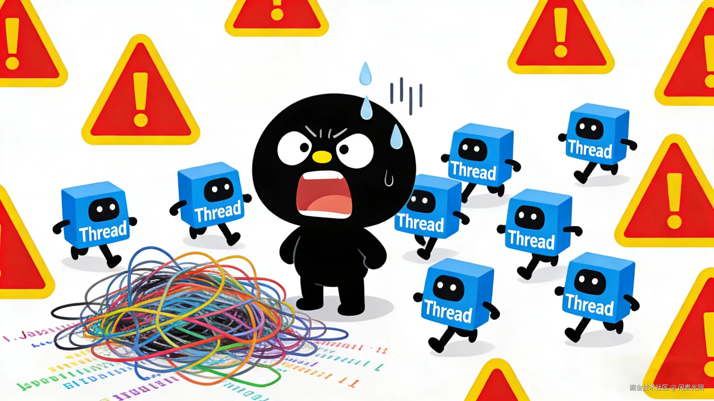 在Java刚诞生的年代,如果你想写一个多线程程序(比如同时处理多个用户请求),会发现手里的"工具"少得可怜,每一步都在踩坑: