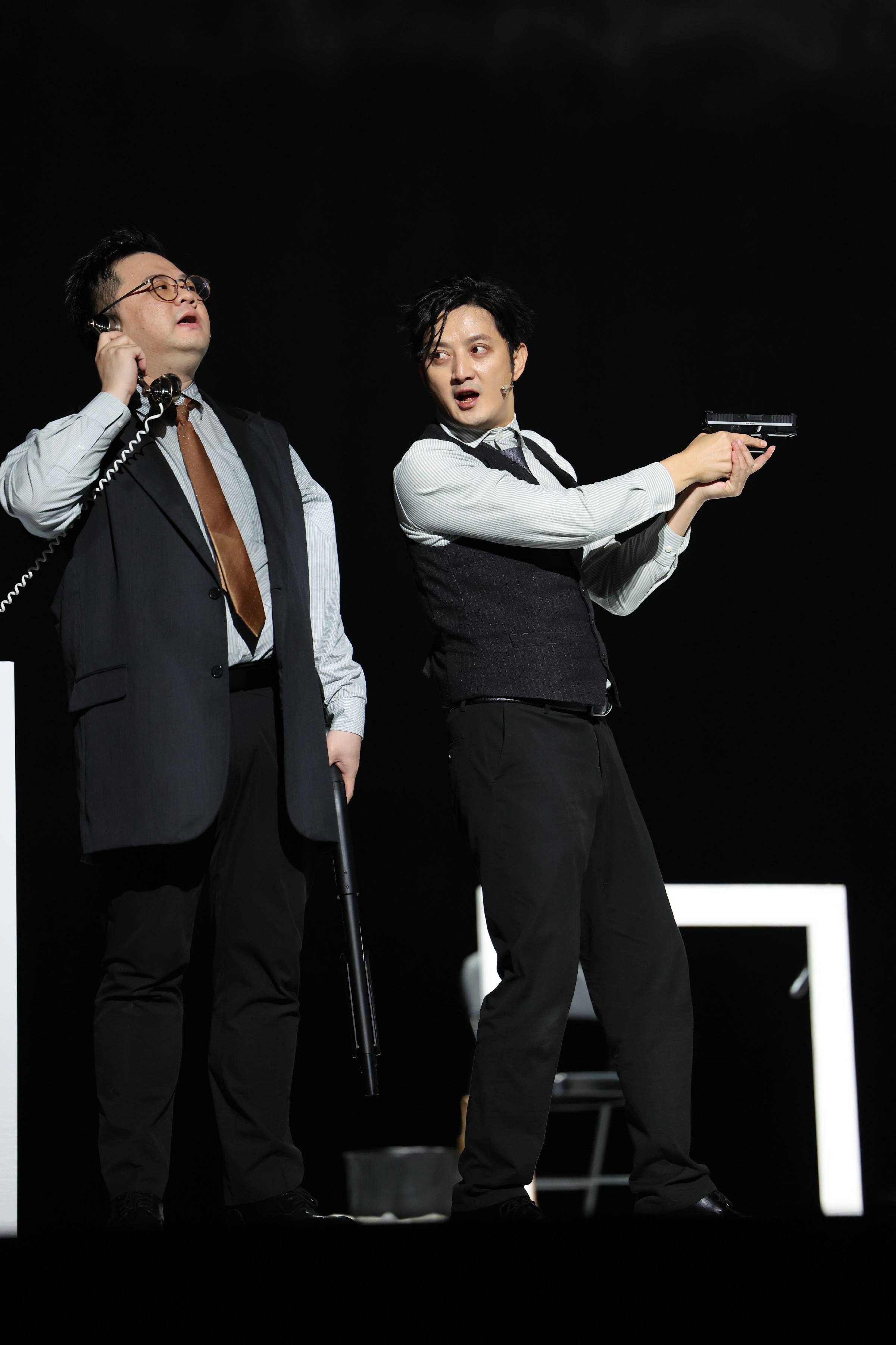 舞台上,钮宝平塑造的汉克斯是一个典型的"妻管严"------既要挣钱养家,又要照顾妻子,家中大大小小的事情全由他操心。而他的妻子,则是一个对家庭事务几乎"什么都不管"的女人。汉克斯远不止是一个喜剧标签,他是剧中"沉默的大多数"的缩影。其性格底色是唯唯诺诺与委曲求全------怕老婆、惧权威,是在工作中习惯顺从、在生活中背负压力的典型小人物。钮宝平深刻理解到,这个角色的核心是被生活"打劫"的荒诞与辛酸。即使在劫匪枪口下,他依然无法摆脱日常的桎梏,这种强烈的反差正是角色震撼力的来源。