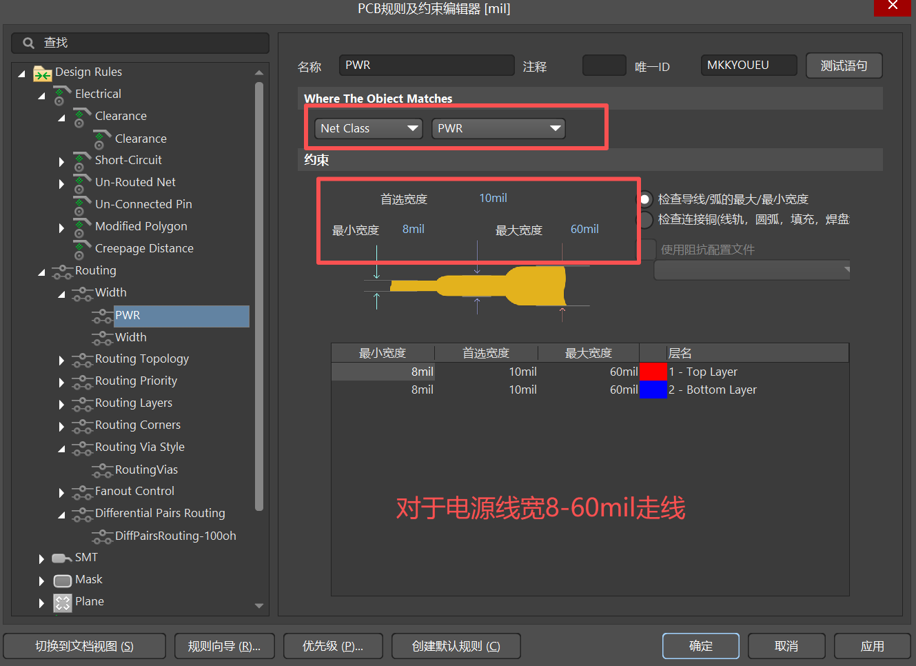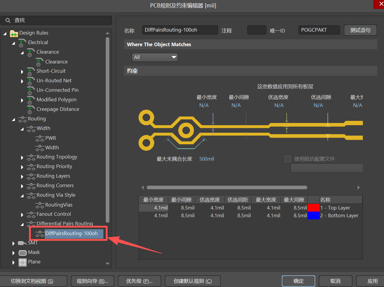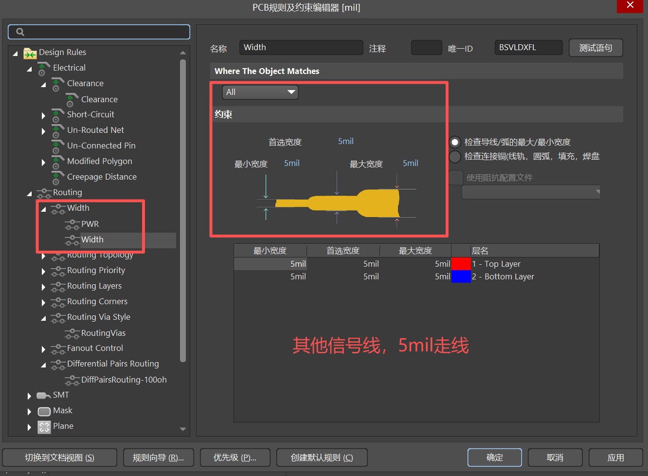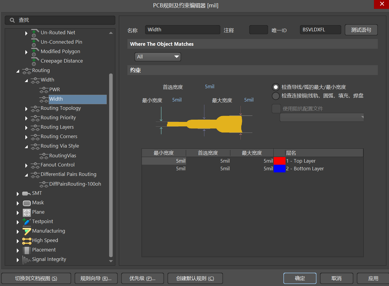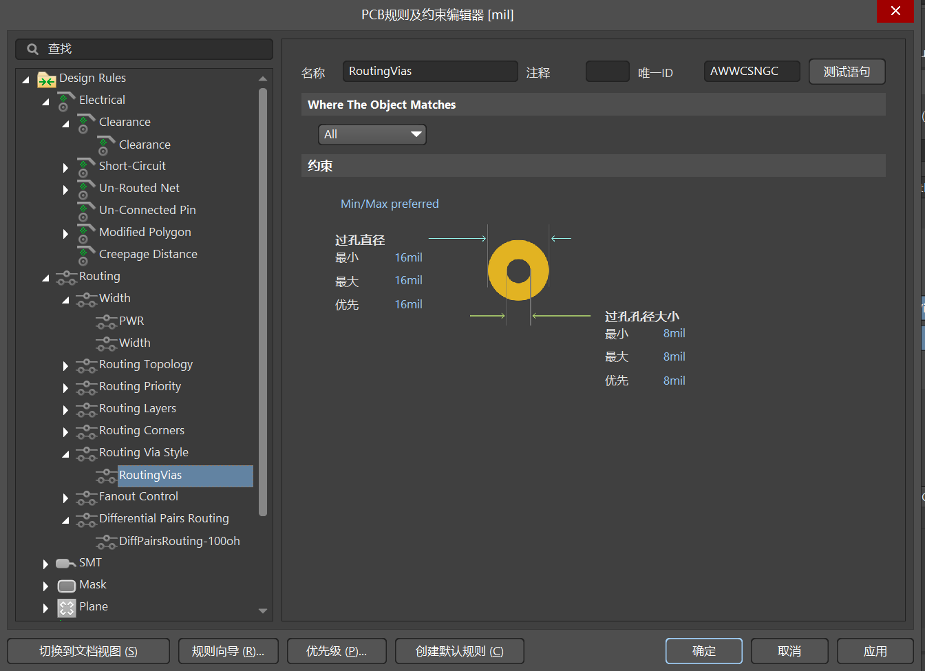 (2)、Routing :走线规则(主要设置线宽、过孔大小、差分走线规则)【常用】