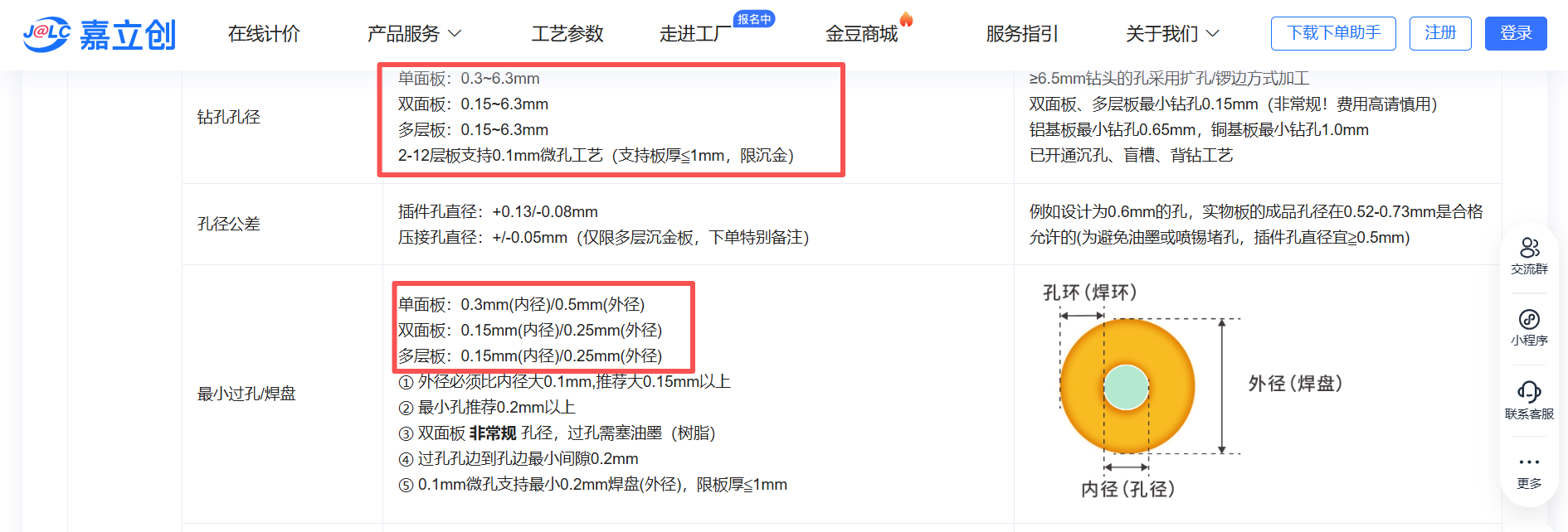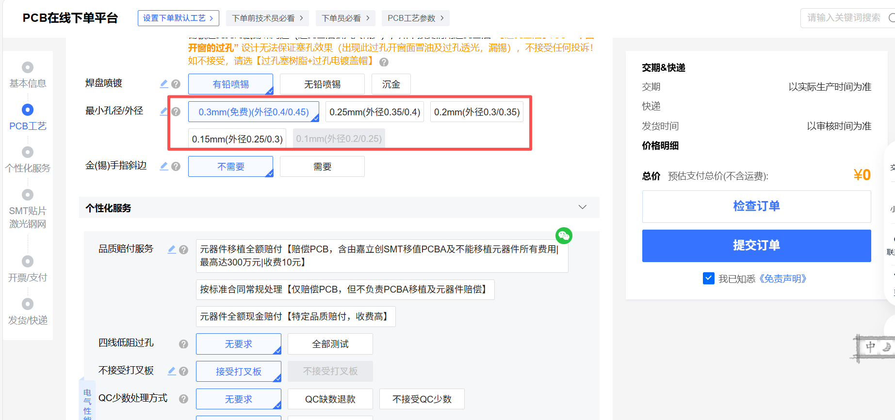 三个过孔选择都是经验值,适应市场上绝大多数板厂的制程能力,我继续以某立创来举例说明。