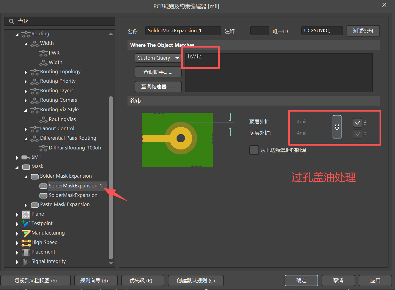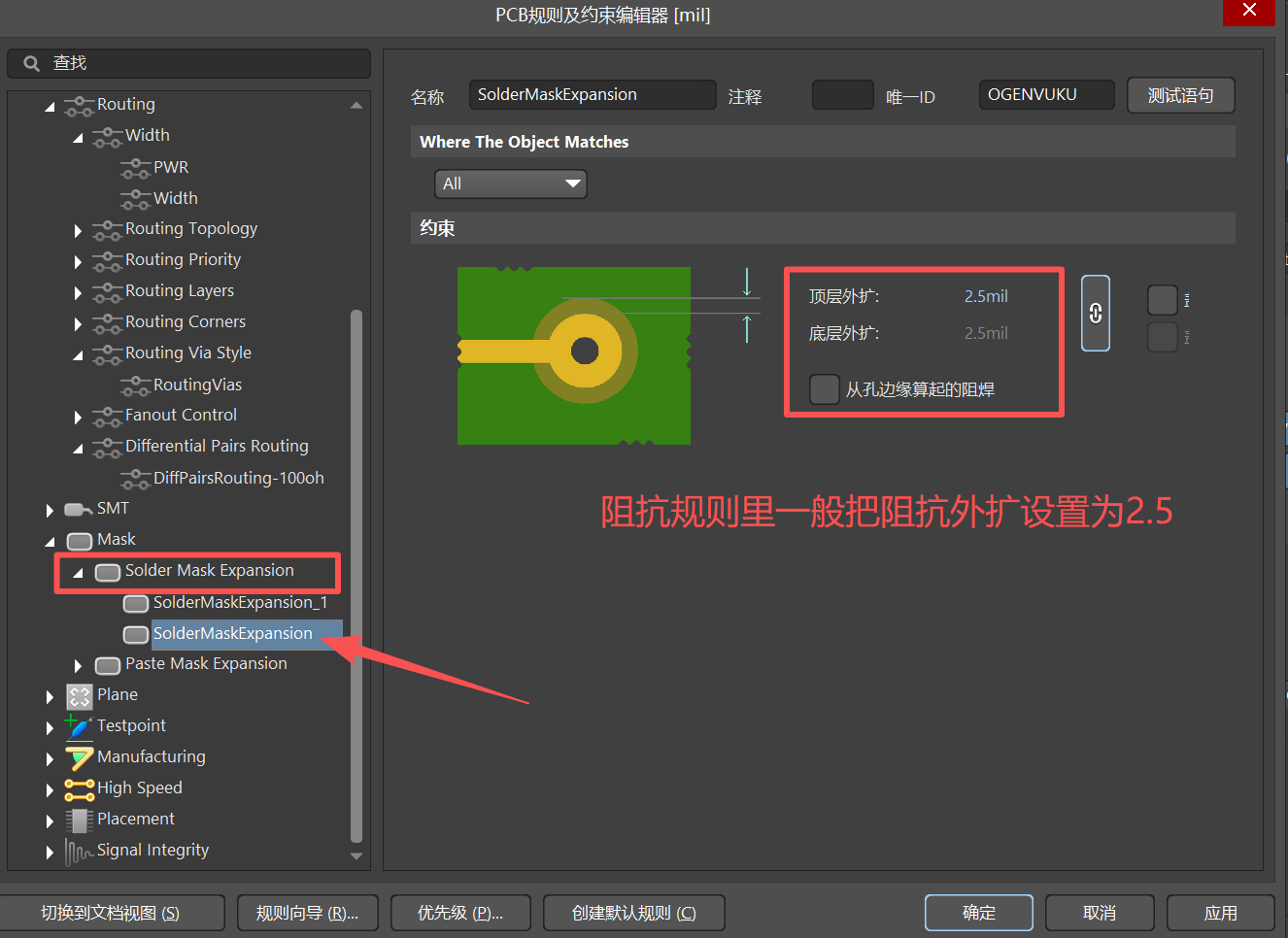 (4)、Mask :阻焊规则