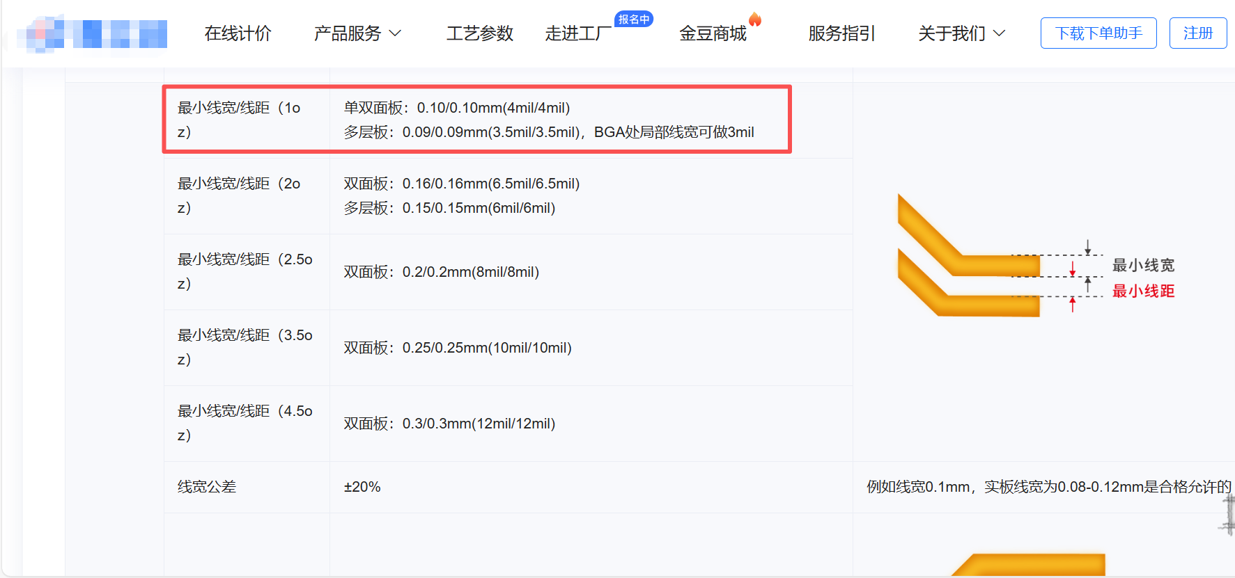 生产工艺要求,如下图某立创的生产工艺最小间距: