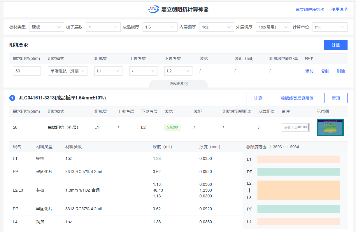 某立创阻抗计算神器使用说明