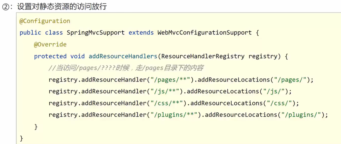 ProjectInterceptor,并实现HandlerInterceptor接口) - [2.2 创建配置类`SpringMvcSupport`,继承`WebMvcCofigurationSupport`,并实现`addInterceptors()`方法](#2.2 创建配置类