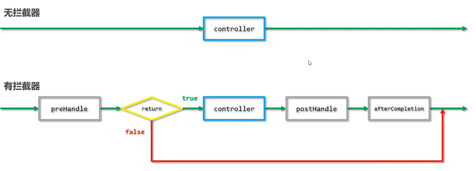 - **拦截器(Interceptor)**是一种动态拦截方法调用的机制,在SpringMVC中动态拦截控制器方法的执行。
