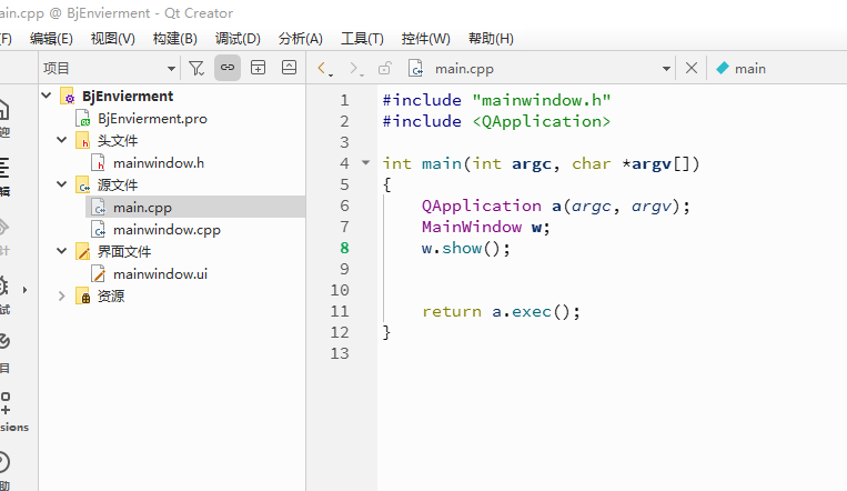Qt项目的源代码通常包括C++文件(.cpp)和头文件(.h)。这些文件实现了应用程序的逻辑和功能。主函数通常位于main.cpp中,而其他类定义和实现分布在各自的头文件和源文件中。