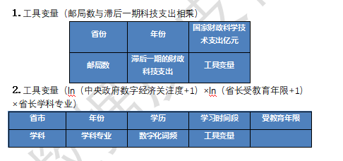 其次,考虑到中国产业政策"中央先行、地方跟进"的自上而下执行逻辑,以及地方政府主政官员教育背景对其政策选择和政策设计的影响,作者将中央政府数字经济关注度与地方政府主政官员教育背景相结合,构建第二个工具变量。根据数据特征,具体测算方法为,工具变量=ln(中央政府数字经济关注度+1)×ln(省长受教育年限+1)×ln(省长学科专业)。具体地,"中央政府数字经济关注度"为中央人民政府工作报告中数字经济关键词数量,以衡量中央政府对数字经济发展的关注程度;"省长受教育年限"为省长受正式教育的年数,以衡量受教育水平;"省长学科专业"变量表征省长的理工科或文科背景,当省长学科专业为理工科时赋值2,当省长学科专业为文科时赋值1。