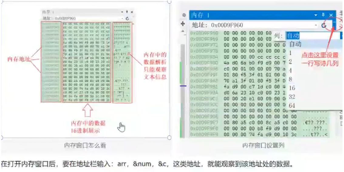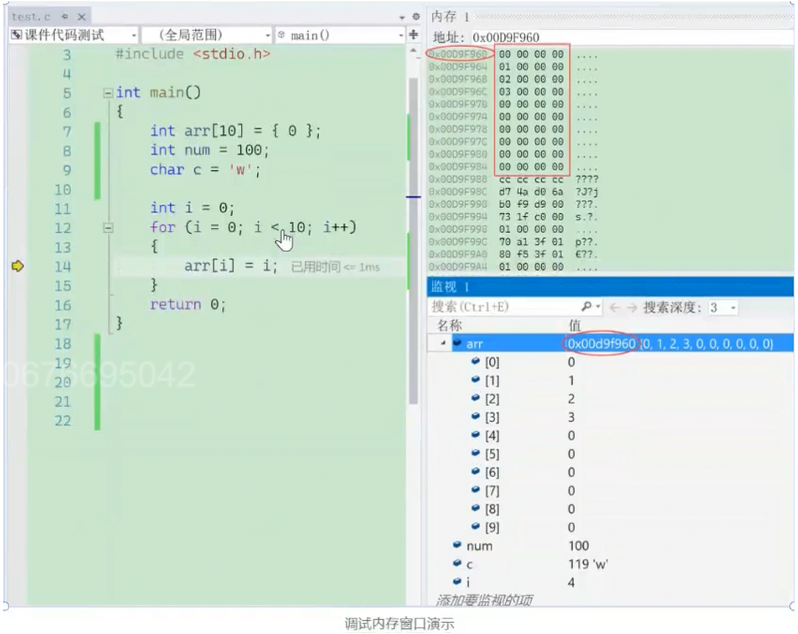 在内存窗口中观察数据: