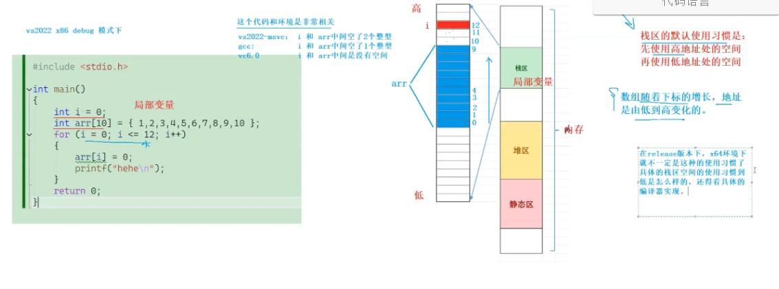 在VS2022,X86,Debug的环境下,编译器不做任何优化的话,下面代码执行的结果是啥