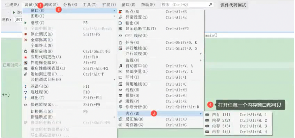 打开内存窗口:
