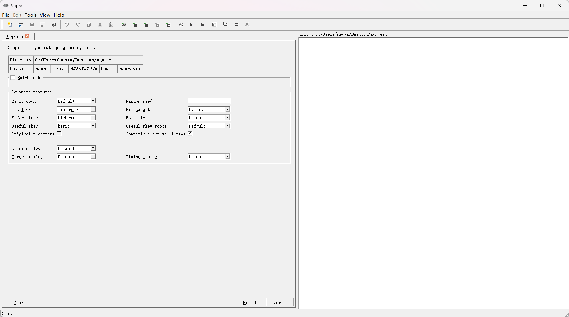 此后。引脚变动,只需要在Quartus的Pin Planner内绑定,然后重新编译。代码变动也是重新在Quartus编译,然后只在Supra内点击Tools - > Compile 然后点击Run即可生成最新的烧录文件。
