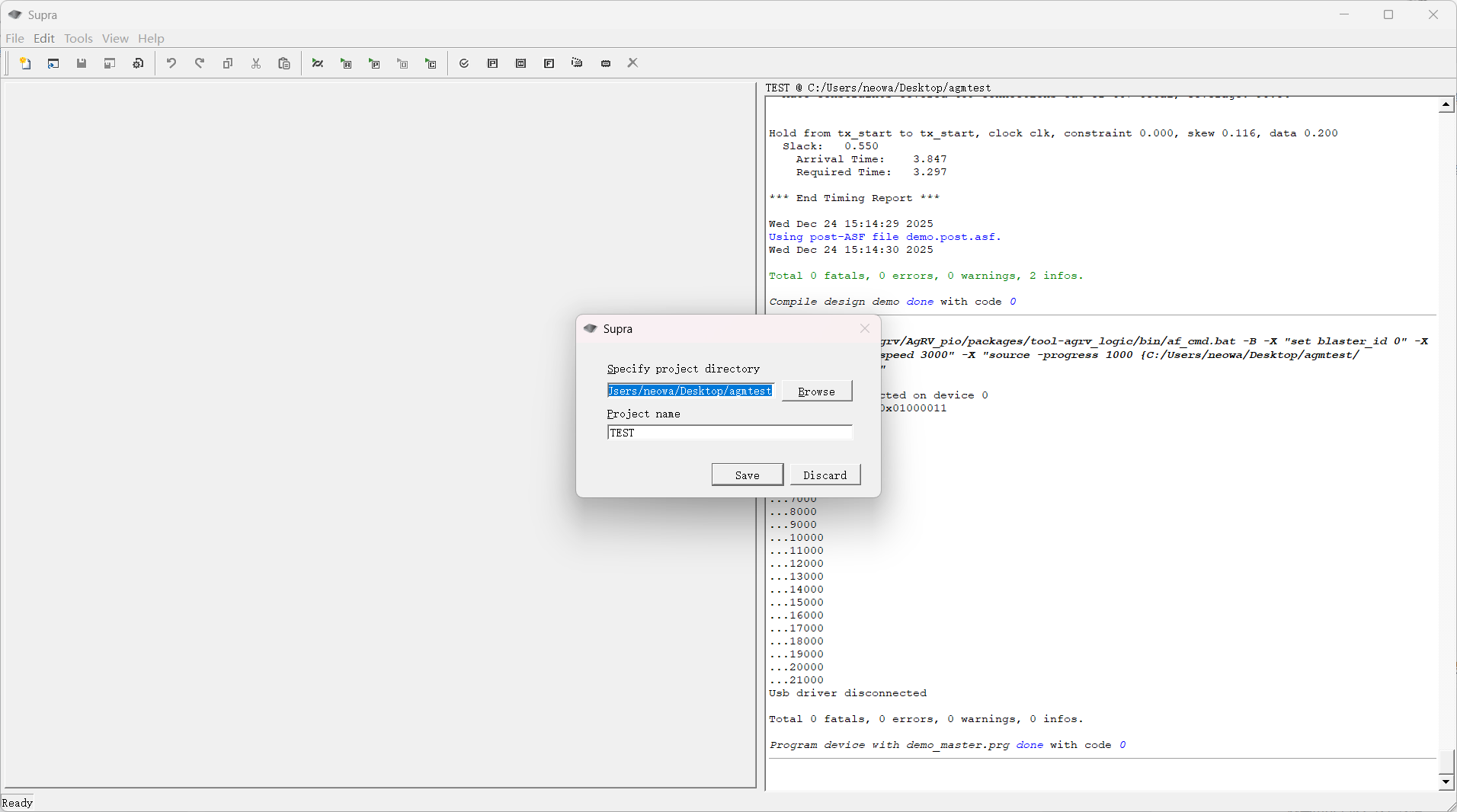 本教程主要针对,使用Supra新建Quartus工程并进行持续开发,而非只是工程转换教程,不需要使用EP4开发完再转换,直接使用AG10K上手开发。