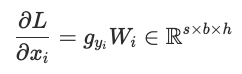 反向时,从上游获取的是完整梯度g_Y(代码中为grad_output)。计算b的梯度,sum_{s,b} g_Y即可(相当于对每个token都产生梯度求和);接下来,由于前向传播中的All Reduce操作Z=sum(Z)的Jacobian矩阵(partial Z/ partial Z_i)为单位对角阵I,因此对每个GPU来说所需的梯度就是完整的梯度g_Y(所以All Reduce操作的反向就是复制梯度到各个GPU)