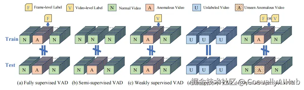 根据训练时使用的标注信息不同,VAD 可分为以下五种模式: