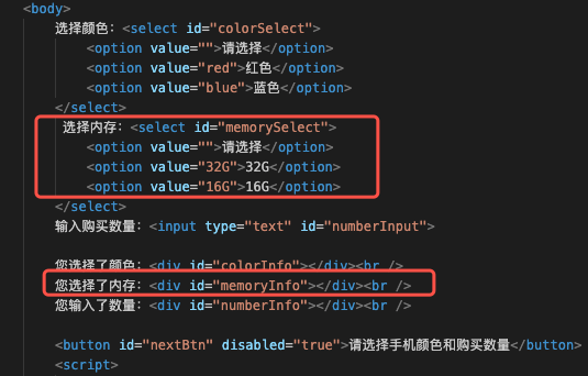 <button id="nextBtn" disabled="true">请选择手机颜色和购买数量</button>