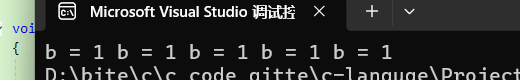b为普遍变量,储存在栈区。生命周期仅限于函数调用期间,所以每次for循环之后销毁,输出5个1