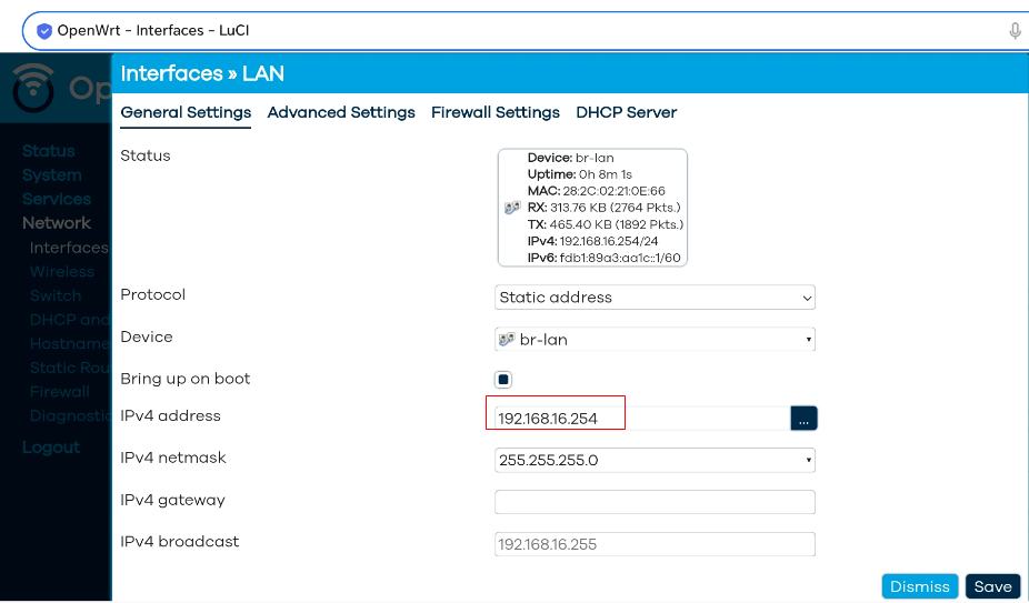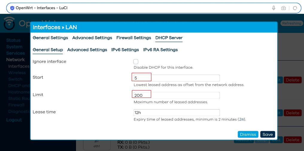 4、修改DHCP Server: 0~255都可以。