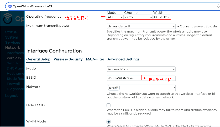 7、5G网络的设置,选择自动信道,并修改WiFi名称。